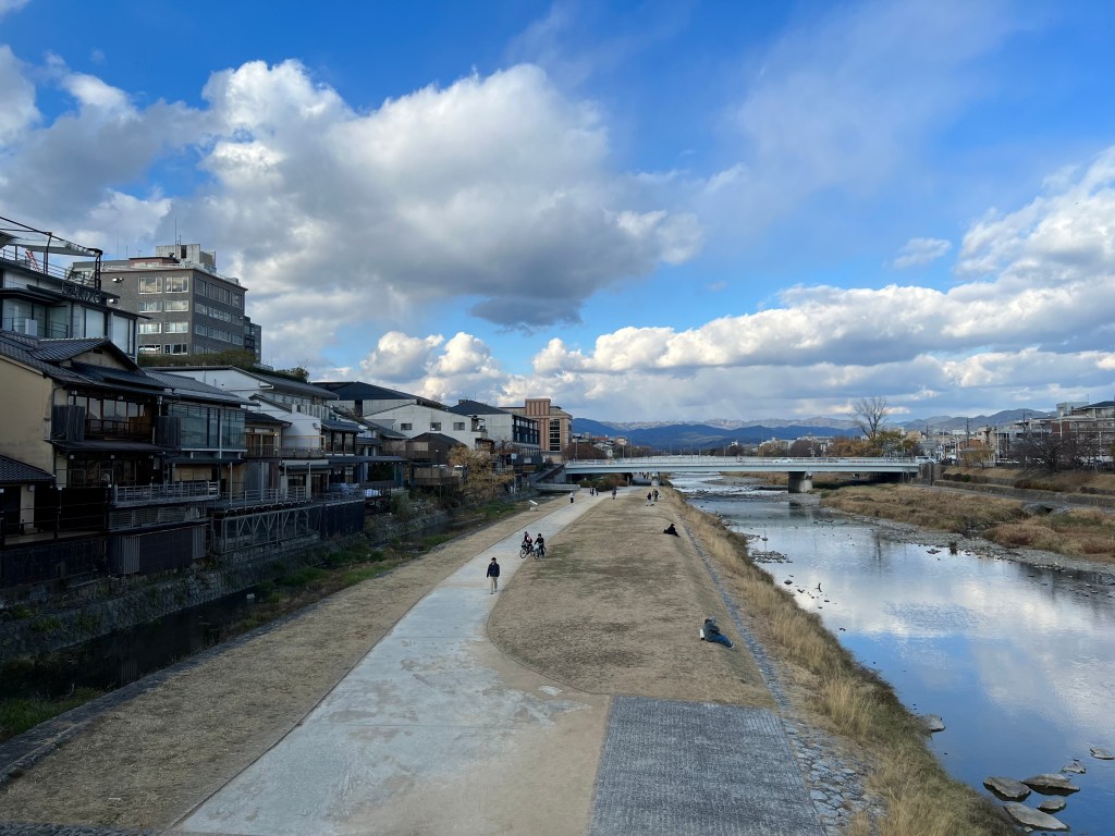 大多数在京都的时光都是这样漫无目的的在街道上溜达。城市不大,不一会儿便能走到鸭川,只是此时此季草木皆是一派萧索,鸭川的景色也略微显得凄凉。夜灯初上时分,沿着鸭川边的先斗町小径徜徉,各式各色的酒馆餐厅,街道在灯笼的映衬下显得繁华;流连忘返的食客酒客,当然还有游客;幸运的话迎面走来三两艺伎,身着和服,蹑着脚步,袅袅婷婷。偶尔和行人对视,则侧首掩面,快步匆匆走过。能想象着大概百年以前的京都,是否也是同一番场景?