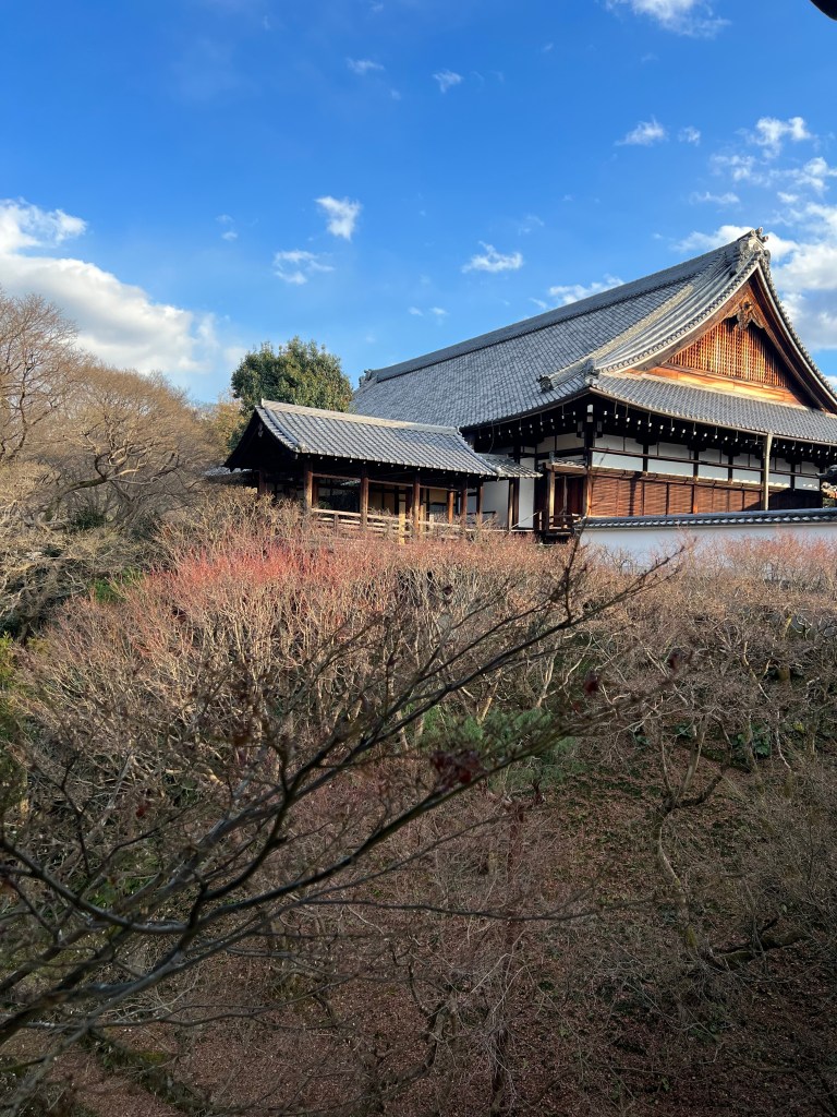 另外此行在京都,出了走路之外做的最多的事怕就是逛寺庙了。大大小小算下来,大概有拜访了七八间寺庙。其中也有一天逛到四间的特种兵拜佛的壮举。这之中大概印象最深的是大本山东福寺,西本愿寺以及三十三间堂。东福寺的曲径通幽,尤其是通天桥,在红叶季的景色是十分出名的。只是我们在京都的时间已经是刚刚过了红叶季,没有看到红叶季的盛景。反倒是干枯的枝叶带来的萧索,有一种寺院的禅意。让我想起无数个类似这样的在北京的冬天,找一个下午坐公车从学校到颐和园,晴朗和煦的阳光透射在千柱廊,湖畔的星星点点的乌鸦,就这样可以一直待到傍晚。东福寺的游客并不是很多,庭院的枯山水以方格为主题,大殿古朴而庄重,由于游客不多,在殿前的时候并没有一种要“赶快拜拜给后面排队的人让位”的压迫感,稍微站的久一点,心境便能平和下来。在这其中三门的真实观感尤为震撼,是日本现存最古老的禅宗样山门;在大殿东面兀自矗立着,见证着长达六百多年的过往。